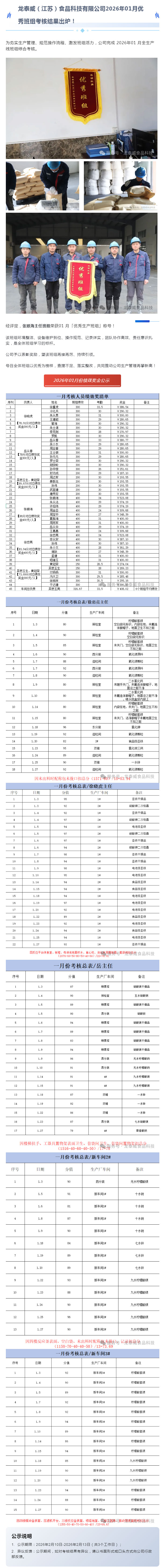 2026年01月优秀班组公示 | 龙泰威01月优秀班组考核出炉!