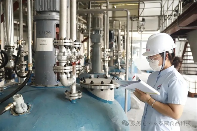 走进龙泰威(江苏)食品科技有限公司的生产车间,你会看到什么? 是光洁如新的反应平台?是整齐划一的物料摆放?还是一丝不苟的操作规范? 这背后,是一套细致入微的班组生产考核标准,更是每一位龙泰威人日复一日对品质的坚守。 今天,就让我们一起走进优秀班组的生产现场,看看他们是如何将40余项考核内容,融入每一处细节,守护“舌尖上的安全”。 一、环境之净:从一尘不染开始 “整洁,是生产的第一道品质。” 在优秀班组,你绝不会看到工具随意散落、物料遍地堆放。他们的秘诀很简单:随用随清,定置管理。 反应平台:投料结束,落地料即刻清理,空袋规整入吨袋;水管用完,立刻归位悬挂;连窗台上,都只允许出现统一放置的水杯。